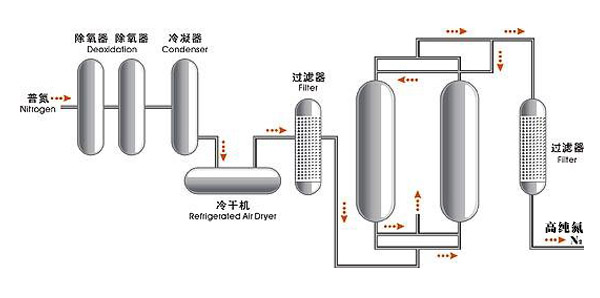 氮氣純化裝置也叫氮氣純化設備,是我公司研發生產的高端氣體純化設備,用于工業上氮氣除雜,主要除去的是氮氣中的氧氣,以提高氮氣的純度。氮氣純化裝置廣泛應用于半導體制造、醫藥、化工、冶金、電力部門等領域。